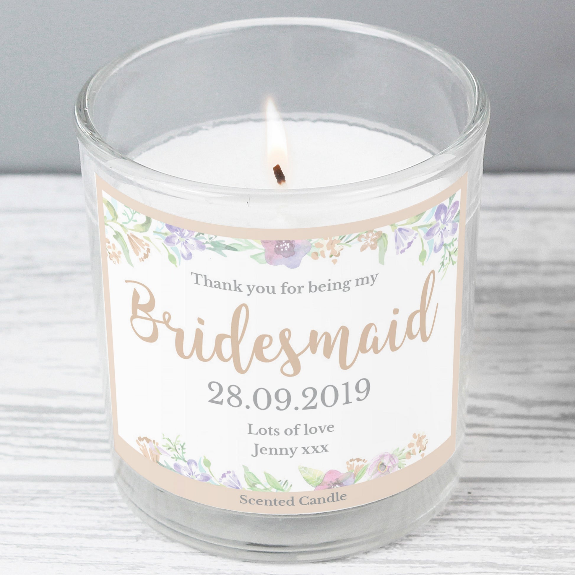 Personalised Bridesmaid 'Floral Watercolour Wedding' Scented Jar Candle