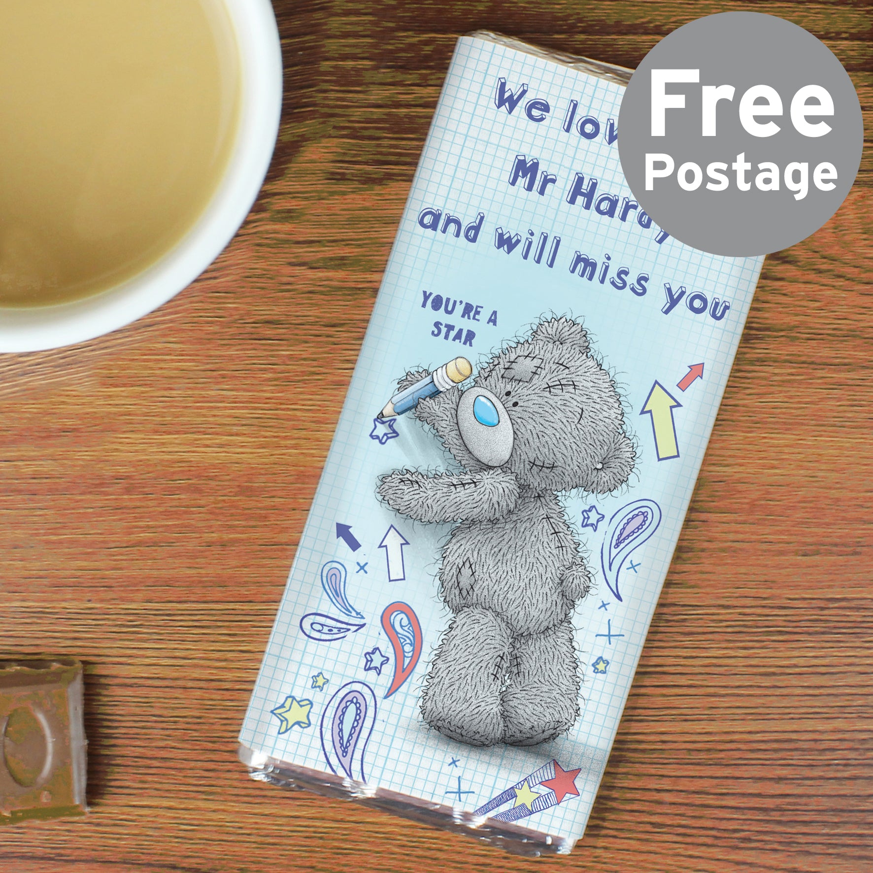 Personalise the front of the 'Me To You' Teacher chocolate bar with a message of up to three lines of 15 characters per line.