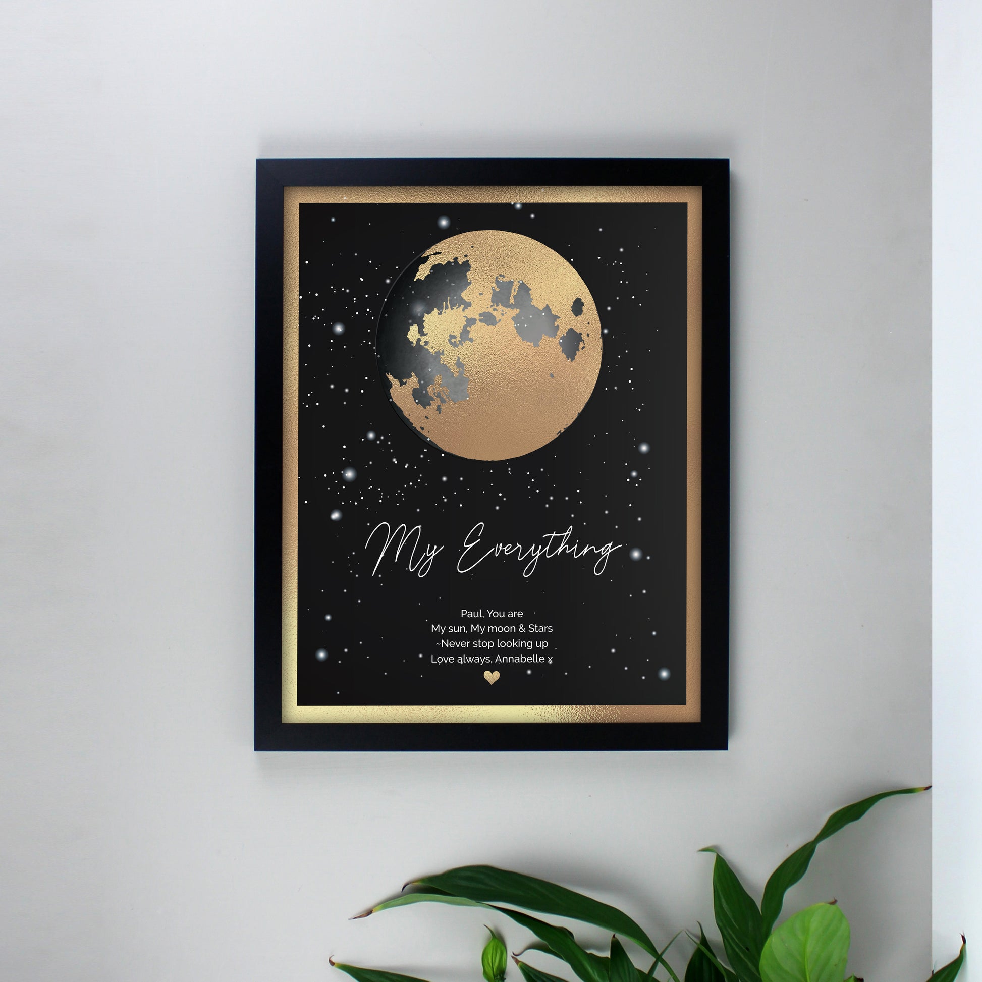 Our Personalised Sun, Moon & Stars Framed Print is a modern take on a romantic sentiment! Depicting a stylised moon and stars, it's a subtle design for both men and women.